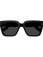 Elevate your accessory game with the Gucci GG1084S Shiny Solid Black Sunglasses. Featuring a sleek plastic frame and integrated nose pads, these sunglasses combine bold style and comfort. The plastic lenses come with a UV coating to help protect your eyes from harmful rays while providing a chic, minimalist look. Perfect for both men and women, the GG1084S model is designed for those who appreciate luxury, simplicity, and performance. The distinctive Gucci branding on the outer temples adds an unmistakable touch of sophistication. Whether you're strolling in the city or enjoying a sunny getaway, these sunglasses provide high-end fashion and reliable protection in one seamless design.
