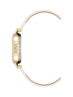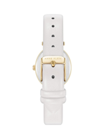 Combine luxury with sustainability with the Anne Klein Women's Premium Crystal Accented Sustainable Leather Strap Watch. Each lug is accented with a premium crystal, while the mother-of-pearl dial features gold-tone hands and markers for refined elegance. The watch is paired with an ivory sustainable leather strap crafted from responsibly-sourced leather through the Leather Working Group, a nonprofit committed to minimizing the environmental impact of leather production. The mineral crystal lens protects the dial while maintaining clarity, and water resistance up to 100 feet (30M) ensures durability for everyday wear. Perfect for fashion-conscious, eco-friendly women, this timepiece blends classic style, functionality, and sustainability in one elegant accessory. Ideal for both casual and formal occasions, it’s a versatile statement piece for the modern wardrobe.
