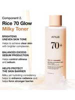 Transform your daily skincare routine with the Anua Rice Trio Set, a complete bundle designed to brighten, hydrate, and refine the skin. The multi-purpose rice cleansing powder doubles as a wash-off mask or cleanser, effectively removing impurities while being gentle on all skin types, including sensitive skin. Follow with the lightweight milky toner, enriched with 70% ANUA Rice Water, niacinamide, and ceramides, to deeply hydrate and prepare the skin for better absorption of serums and moisturizers. Complete the routine with the daily hydrating serum, formulated with ANUA Ricera 7+ and Arbutin, to nourish, even skin tone, and achieve a smooth, luminous complexion. This set is ideal for anyone seeking a glass-skin finish, combining gentle, effective ingredients in a complete K-beauty routine.