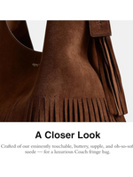 Coach Brooklyn Fringe Shoulder Bag 39 – Luxurious Suede Hobo Style, Spacious Design, Fits 15" Laptop