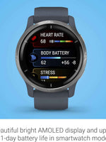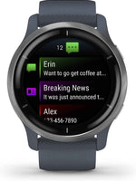 Garmin Venu 2 GPS Smartwatch – Silver Bezel with Granite Blue Silicone Band
