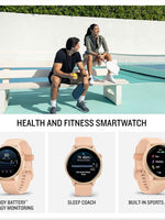 Elevate your fitness and daily activity tracking with the Garmin vívoactive® 6 GPS Smartwatch. Equipped with a vivid AMOLED display and a sleek Metallic Pink Dawn finish, this smartwatch combines style with high-performance features. Track your workouts, steps, calories, heart rate, sleep, stress, and more with built-in health monitoring tools. Enjoy cycle tracking, customizable sports apps, and guided workouts right on your wrist. The watch supports built-in GPS, so you can accurately map outdoor runs, rides, and hikes. With 8 GB of storage, you can also store your favorite music to keep you motivated during workouts. Its long-lasting battery life of up to 11 days in smartwatch mode ensures continuous monitoring without constant recharging. Bluetooth connectivity allows seamless syncing with Garmin Connect™, giving you in-depth insights to optimize your health and performance.