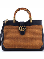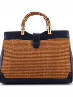 Gucci Pre-Loved Dahlia Bamboo Top Handle Tote – Medium Straw & Leather, Blue