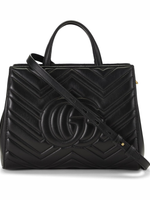 Gucci Pre-Loved GG Marmont Small Top Handle Bag – Black Chevron Leather