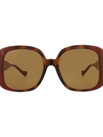 The Gucci Square/Rectangle Sunglasses in Havana Burgundy with Brown Lenses deliver modern sophistication with a bold touch. Crafted with a premium injection frame, these sunglasses showcase a rich Havana Burgundy finish that pairs perfectly with the warm brown lenses. The design combines sharp angles with soft curves, making it a versatile accessory that complements both casual and formal looks.
