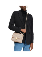 The Kate Spade New York Deco Leather Flap Chain Crossbody is a timeless luxury bag that effortlessly combines style and practicality. Crafted from smooth quilted cow leather with microsuede and faille lining, this elegant crossbody features signature K hardware inspired by Art Deco design and a magnetic snap closure for secure, easy access. The adjustable gold-tone chain strap allows for versatile wear as a shoulder or crossbody bag, while interior zip and slip pockets provide organization for essentials like an iPhone Max or a continental zip-around wallet. Measuring 6.75” H x 9” W x 2.75” D with a 22” strap drop, this handbag is perfect for both everyday use and special occasions. A luxurious statement piece that also makes an ideal gift for style-conscious women.