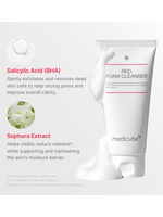 Achieve clear, refreshed skin with Medicube Red Foam Cleanser, a gentle yet powerful daily cleanser designed for troubled and acne-prone skin. Infused with 0.45% Salicylic Acid (BHA), this foam cleanser penetrates deep into pores to remove dirt, oil, and impurities, helping to prevent breakouts and control excess sebum. Its rich, moist lather cleanses thoroughly—including stubborn makeup—without causing dryness or irritation. The non-irritating formula leaves skin feeling soft, hydrated, and balanced after every wash. Dermatologist-tested and carefully formulated, it suits all skin types, especially sensitive and oily skin prone to blemishes. Incorporate it into your daily skincare routine for clearer, smoother, and healthier-looking skin.