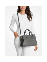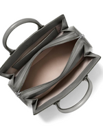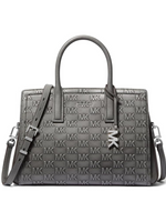 The Michael Kors Laila Medium Satchel is designed to balance classic elegance with everyday functionality. Crafted from MK debossed burnished logo leather in a rich storm hue, it features nickel-tone hardware that lends a sleek, modern edge. Its structured silhouette opens to a medium-sized interior, perfectly sized to organize your daily essentials while maintaining a polished look. The magnetic closure ensures secure storage, while dual top handles and an optional crossbody strap offer versatile styling. Sophisticated and versatile, the Laila satchel transitions seamlessly from office hours to evening outings, making it a wardrobe staple for the modern woman who values both fashion and function.