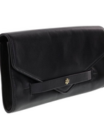 Tory Burch Elizabeth E/W Envelope Clutch Bag – Black Leather Evening Bag