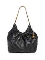 The Tory Burch Fleming Mini Hobo Bag combines timeless design with modern sophistication. Made from 100% Lamb Leather, this compact hobo bag boasts a raised check pattern, signature gold-tone hardware, and a charming Tory Burch logo charm that adds elegance to any outfit.