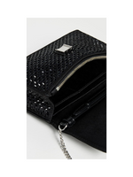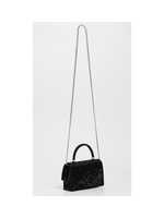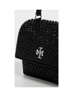 Tory Burch Kira Satin Embellished Mini Top Handle Wallet on Chain – Black Rhinestone Accent, Silver Hardware