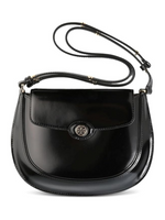 The Tory Burch Robinson Spazzolato Small Leather Flap Bag in Black is a sophisticated and compact handbag designed for the modern woman. Crafted from high-quality patent and smooth leather with leather trim, this versatile piece combines timeless style with functionality.
