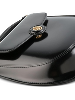 Tory Burch Robinson Spazzolato Small Black Leather Flap Handbag – Elegant Magnetic Closure Crossbody Bag for Women