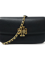 Tory Burch Women’s Britten Chain Wallet with Wristlet – Black Pebbled Leather Designer Clutch with Chain Accent