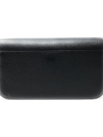 The sleek black exterior pairs effortlessly with any outfit, while the leather lining adds a plush, sophisticated touch. The wristlet includes a top handle and a removable, adjustable strap, offering versatile ways to carry it—whether as a clutch, wristlet, or compact handbag.