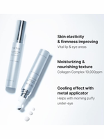 The built-in roller applicator gently massages the skin, improving absorption while reducing puffiness and under-eye bags with a refreshing, cooling touch. Lightweight yet deeply hydrating, it delivers essential nutrients and moisture without heaviness.
