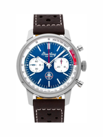 The Breitling Shelby Cobra Top Time B01 is a precision-crafted chronograph watch inspired by classic racing heritage. Powered by the in-house Breitling 01 Manufacture movement, this 41mm stainless steel timepiece delivers exceptional performance with a 70-hour power reserve and COSC-certified accuracy. Designed for speed enthusiasts, it features a bold dial layout with 1/4 second and 30-minute chronograph functions, protected by a cambered sapphire crystal with dual-sided anti-glare treatment. The brown leather strap enhances its vintage motorsport aesthetic while offering lasting comfort. With a 10-bar water resistance rating, screw-fitted sapphire caseback, and 34-jewel movement construction, the Shelby Cobra Top Time blends luxury craftsmanship with dynamic functionality. Perfect for collectors and automotive watch lovers alike, this Breitling chronograph stands out with iconic racing character and mechanical excellence.