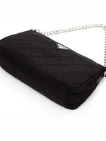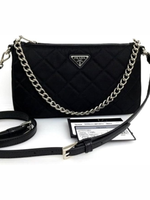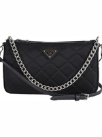 Prada Quilted Tessuto Nylon Chain Convertible Shoulder Bag – Black Designer Crossbody 1BH026