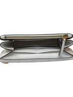 Its clean, optic white design is accented by elegant gold-tone hardware, complementing any outfit—from casual daytime looks to evening ensembles. The magnetic closure keeps your essentials secure while providing easy access.