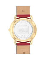 Coach Elliot Women’s 2H Quartz Watch – 36mm Gold-Tone Case, Red Calfskin Strap, Crystal Accents with Signature Heart Motif, Water Resistant 3ATM