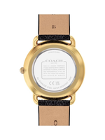 The Coach Elliot Women's 36mm Quartz Watch combines sophisticated design with daily functionality. This elegant timepiece features a pink dial protected by a durable mineral crystal, offering a subtle pop of color for any outfit. Its black polyvinyl chloride (PVC) band ensures a comfortable and precise fit for all-day wear, making it suitable for work, casual outings, or special occasions. Powered by reliable quartz movement, it delivers accurate timekeeping with minimal maintenance. Water-resistant up to 3 ATM, this watch can withstand splashes and brief immersion in water, making it practical for everyday life. Designed with attention to detail, the Coach Elliot watch offers both comfort and style, making it a versatile accessory for women seeking a combination of elegance, functionality, and timeless appeal.