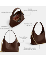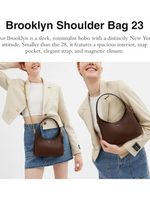 With a handle drop of 7 1/4" and a detachable chain strap (24" drop), the Brooklyn Shoulder Bag offers three distinct wearing options: carry by hand, wear over the shoulder, or use as a crossbody for hands-free convenience. Its dimensions of 9 1/4" (L) x 7 1/4" (H) x 3" (W) make it the perfect companion for urban outings or casual evenings.