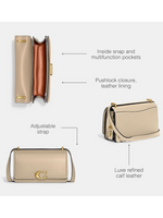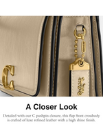 The Coach Luxe Refined Calf Leather Bandit Crossbody is the perfect fusion of elegance and practicality. Crafted from high-shine refined calf leather, this structured flap-front handbag radiates sophistication with a touch of modern attitude. Featuring a pushlock closure inspired by Coach’s iconic Signature pattern, the Bandit Crossbody offers secure access to your essentials. Thoughtfully designed with dual compartments, an interior snap pocket, and a convenient exterior open pocket, it keeps your belongings organized and within reach. The adjustable shoulder strap (21 1/2" drop) allows for seamless styling as a shoulder or crossbody bag. Compact at 7" L x 4 1/4" H x 2 1/2" W, it’s ideal for carrying your phone, wallet, and small accessories while adding a touch of luxury to any outfit. Available in classic Ivory and Black, the Bandit Crossbody perfectly embodies Coach’s legacy of refined craftsmanship.