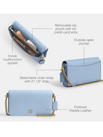 Detachable chain strap with a 21 1/2" drop for shoulder or crossbody wear