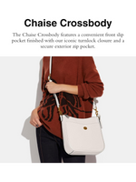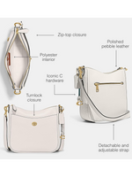 The Coach Polished Pebble Leather Chaise Crossbody is the ideal blend of minimalist design and elevated function. Crafted from plush polished pebble leather with a subtle gloss, this crossbody bag offers a refined, contemporary look. Designed for effortless, hands-free wear, it features a secure zip-top closure, a convenient front slip pocket with Coach’s iconic turnlock closure, and a practical exterior zip pocket for easy access to essentials. The interior includes a snap pocket and fabric lining to keep small items organized. Measuring 10 1/2" L x 9 3/4" H x 2 1/4" W, it’s perfect for carrying your phone, wallet, and accessories without bulk. The detachable strap (21 1/2" drop) provides styling flexibility for shoulder or crossbody use. Available in sophisticated Chalk, Black, and Dark Stone, the Chaise Crossbody embodies Coach’s commitment to modern craftsmanship and chic simplicity.