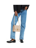 The Kate Spade New York Deco Leather Flap Chain Crossbody is a timeless luxury bag that effortlessly combines style and practicality. Crafted from smooth quilted cow leather with microsuede and faille lining, this elegant crossbody features signature K hardware inspired by Art Deco design and a magnetic snap closure for secure, easy access. The adjustable gold-tone chain strap allows for versatile wear as a shoulder or crossbody bag, while interior zip and slip pockets provide organization for essentials like an iPhone Max or a continental zip-around wallet. Measuring 6.75” H x 9” W x 2.75” D with a 22” strap drop, this handbag is perfect for both everyday use and special occasions. A luxurious statement piece that also makes an ideal gift for style-conscious women.