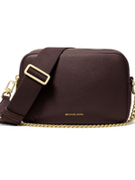 Michael Kors Bryant Medium Double Zip Chain Camera Crossbody Bag – Gold-Tone Hardware / Pebble Leather / Chocolate