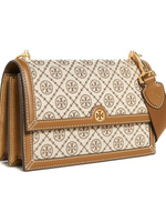 Tory Burch T Monogram Jacquard Shoulder Bag – Elegant Hazel Tan Graphic Design with Leather & Suede Accents