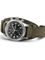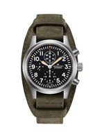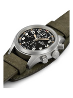 Hamilton Khaki Field Auto Chronograph – Swiss Made, 44mm Stainless Steel Case, Black Dial, Green Leather Strap