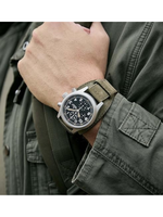 The Hamilton Khaki Field Auto Chronograph combines military-inspired durability with Swiss mechanical precision. Its 44mm stainless steel case houses a bold black dial, designed for optimal readability, while the green leather strap with H-buckle provides comfort and a secure fit. Powered by a Swiss automatic chronograph movement, this watch delivers accurate timekeeping and reliable stopwatch functionality for active lifestyles. The sapphire crystal with antireflective coating ensures long-lasting clarity, protecting the dial from scratches and glare. Water-resistant up to 100 meters (10 bar), it’s built to perform in both daily wear and adventurous conditions. With its robust design and functional elegance, the Khaki Field Auto Chronograph stands as a premium choice for those seeking precision, style, and versatility. Backed by a 2-year international warranty, it promises lasting reliability and Swiss craftsmanship.