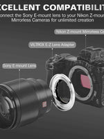 - VERSATILE USE: Expands your lens options by enabling the use of Sony E-Mount lenses on Nikon Z-Mount camera bodies