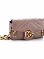 The Gucci Pre-Loved GG Marmont Super Mini Flap Bag is a timeless classic in a petite size, perfect for carrying your essentials in style. Crafted from soft matelassé leather, this structured yet lightweight bag features the signature Double G logo hardware and a refined neutral tone that complements any outfit. The versatile design includes a detachable chain strap and a key ring, allowing it to be worn as a crossbody, belt bag, or carried as a clutch. In very good pre-loved condition, it shows only minor scuffs and creases, with light signs of wear on the interior and hardware. A must-have mini statement piece that combines modern elegance with Gucci’s heritage craftsmanship.