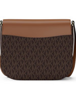 Michael Kors Emilia Small Saddle Crossbody Bag – Gold-Tone Hardware / MK Signature Coated Twill / Brown/Acorn