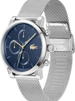 Lacoste Replay Men’s Multifunction Quartz Watch – Stainless Steel Case, Blue Dial with Silver Mesh Bracelet, 5 ATM Water Resistant, 43mm