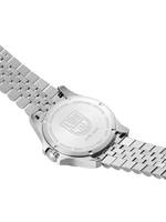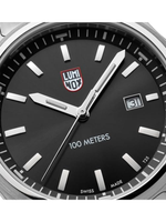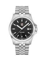 Its 43mm 316L stainless steel case is paired with a scratch-resistant sapphire crystal featuring anti-reflective coating, ensuring clarity and durability in all conditions. The black dial incorporates Luminox Light Technology, providing constant visibility day and night without external charging.