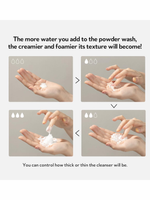 • Powder-to-Foam Cleanser: Transforms instantly for a rich, creamy lather