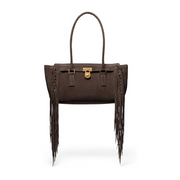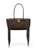 Michael Kors Hamilton Moderne Small Shoulder Tote – Antique Gold-Tone Hardware/Fringe Suede/Chocolate