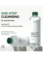 ANUA Heartleaf Low pH Deep Cleansing Water – Gentle Micellar Makeup Remover with Panthenol & Squalane for Sensitive Skin | Korean Skincare, 500g