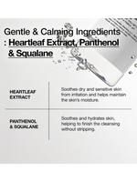 Heartleaf extract, panthenol, and squalane soothe and hydrate skin