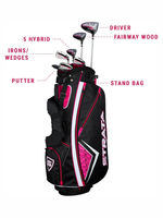 Complete 11-Piece Set: Includes Driver, 5 Wood, 5 Hybrid, 7 & 9 Irons, Sand Wedge, Putter, Stand Bag, and 3 Headcovers.