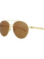 Crafted with a luxurious gold frame, they exude sophistication and durability, while the premium brown lenses enhance visual comfort and provide complete UV protection. Every detail reflects Gucci’s dedication to exceptional craftsmanship and high-fashion design, making these sunglasses a must-have for those who appreciate style and quality.