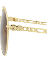 The Gucci Round Sunglasses in Gold with Brown Lenses embody the perfect balance of timeless elegance and modern luxury. With their classic round silhouette, these sunglasses make a refined statement, whether paired with casual attire or elevated evening looks.