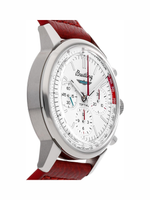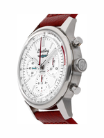 The Breitling Top Time B01 Ford Thunderbird Edition is a striking 41mm luxury chronograph that pays homage to classic automotive heritage and Swiss watchmaking excellence. Crafted in stainless steel, this Swiss-made timepiece features a high-performance self-winding mechanical movement with an impressive 70-hour power reserve. The cambered sapphire crystal, glareproofed on both sides, ensures durability and clear readability. With a 1/4th second chronograph, 30-minute and 12-hour totalizers, and a water resistance of 10 bars, it blends precision with everyday functionality. The vibrant red calfskin leather strap with a stainless steel folding clasp delivers a bold and refined look. Designed for collectors and enthusiasts, the Breitling Top Time B01 Ford Thunderbird stands out with its iconic design, premium materials, and motorsport-inspired character.