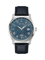 Bulova Classic Wilton GMT Automatic Black Leather Strap Watch – 43mm