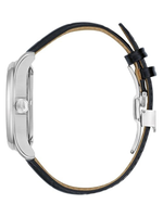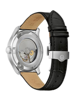 Designed for global sophistication, the Bulova Classic Wilton GMT Automatic Watch (96B385) blends timeless elegance with functional precision. Crafted with a polished silver-tone case and paired with a luxurious black leather strap, this 43mm timepiece delivers a classic silhouette with contemporary appeal.