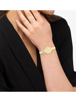 The Calvin Klein Women’s Contemporary Elegance Quartz Watch celebrates refined femininity and minimalist luxury. Featuring a 28 mm thin gold-plated case, the watch is paired with a unique bangle and link bracelet that gracefully contours the wrist. The vertically brushed light champagne dial adds a subtle, sophisticated glow, complementing the elegant metallic finish. Powered by precise quartz movement, it delivers reliable, low-maintenance timekeeping, while the durable mineral crystal protects against scratches, ensuring lasting clarity and shine. Designed with Calvin Klein’s signature attention to detail, this timepiece effortlessly transitions from daytime wear to evening sophistication. Perfect as a premium gift for her, it embodies timeless style, contemporary design, and exceptional craftsmanship.